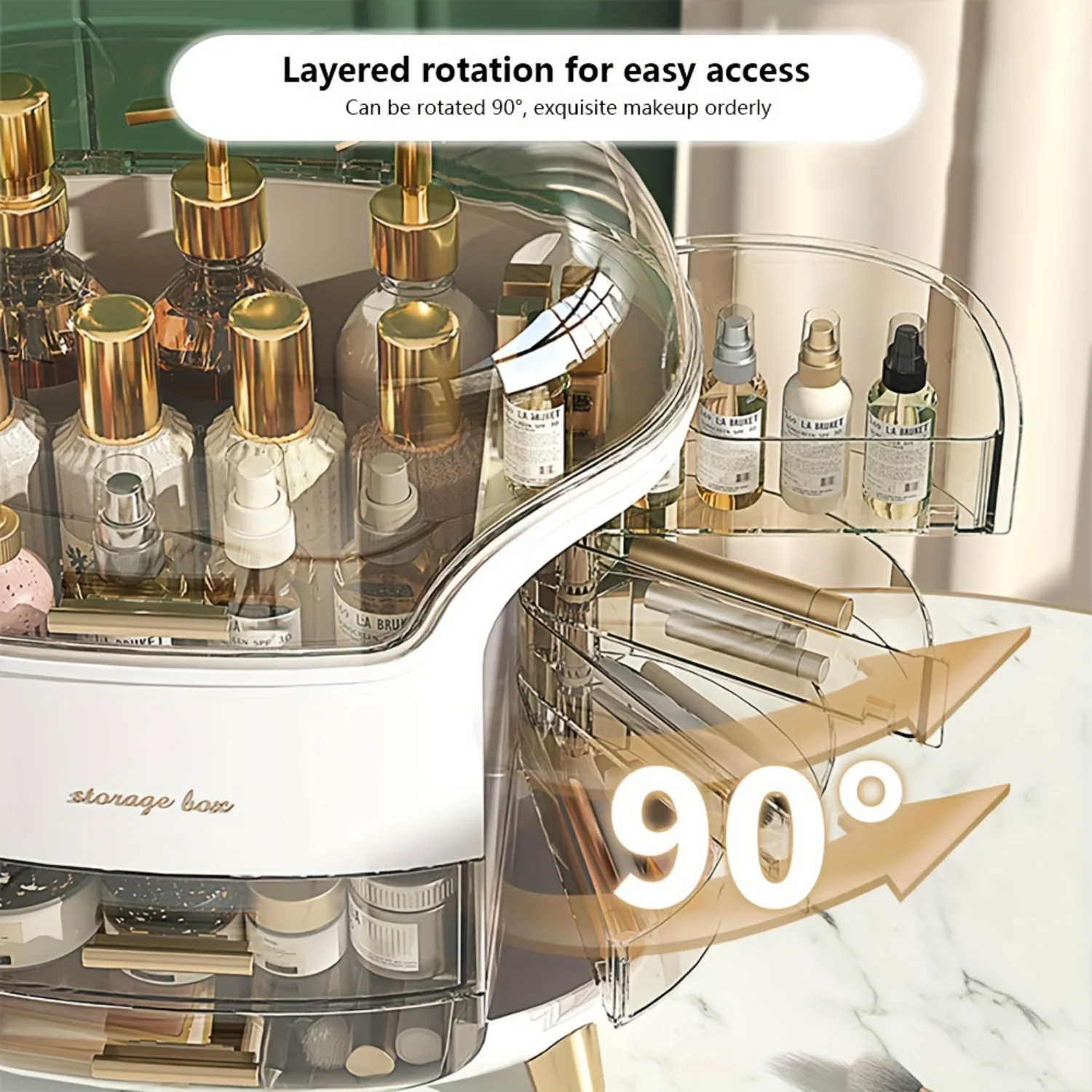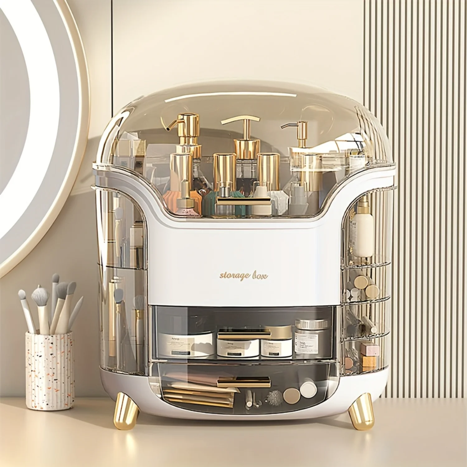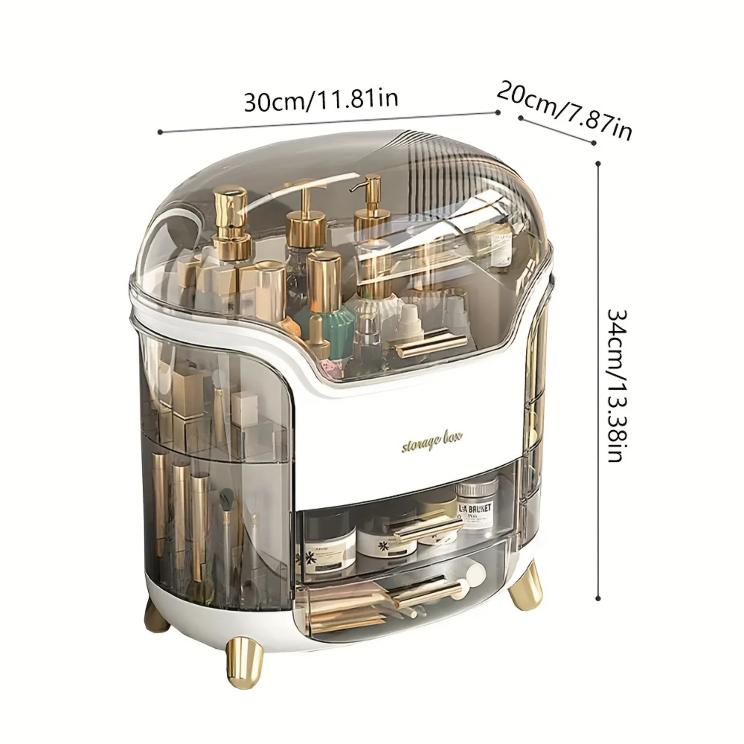 Organizer, 1 Piece Clear Multi Grid Large Capacity Cosmetic Box with Drawer, Luxury Light Desktop Organiser for Bedroom Vanity